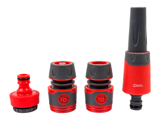 Набор поливочный QUATTRO ELEMENTI 4 предмета. Соединитель 1/2"-2 шт., штуцер 1/2" и 3/4", (646-195)