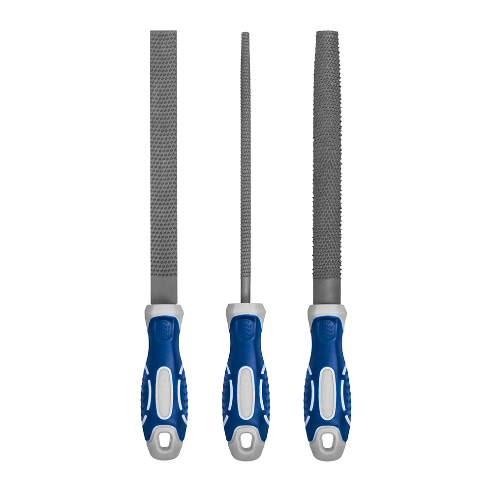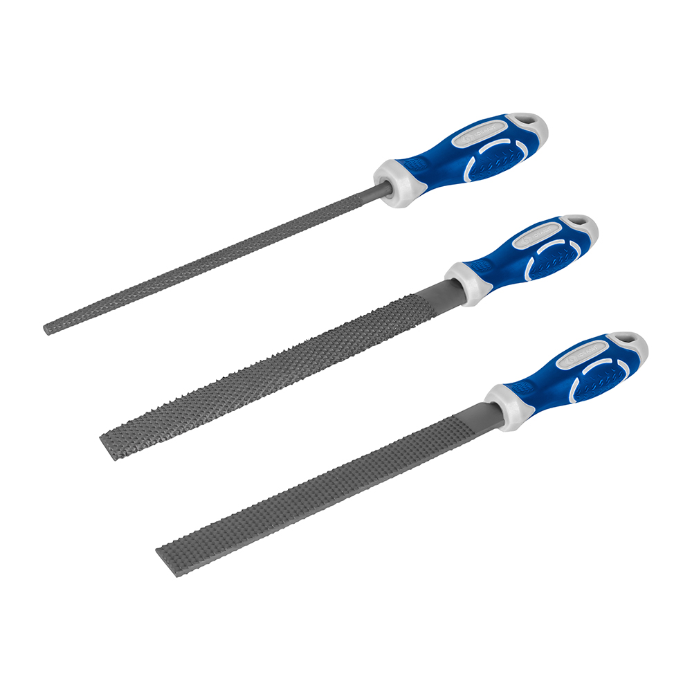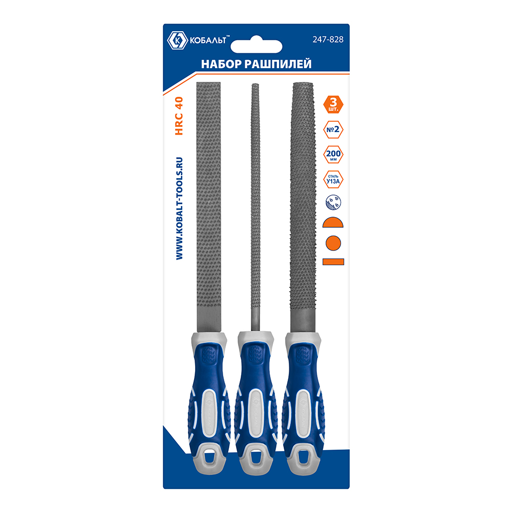 Набор рашпилей КОБАЛЬТ насечка №2, длина рабочая/общая 180/310, 2-х компонентные рукоятки, 3 ШТУКИ, блистер (247-828) - цена, фото, технические характеристики