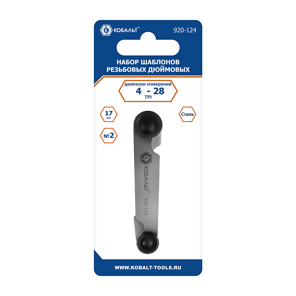 Набор шаблонов резьбовых КОБАЛЬТ дюймовых, диапазон измерений шага резьбы 4TPI - 28TPI, 17 шт., блистер (920-124) - цена, фото, технические характеристики
