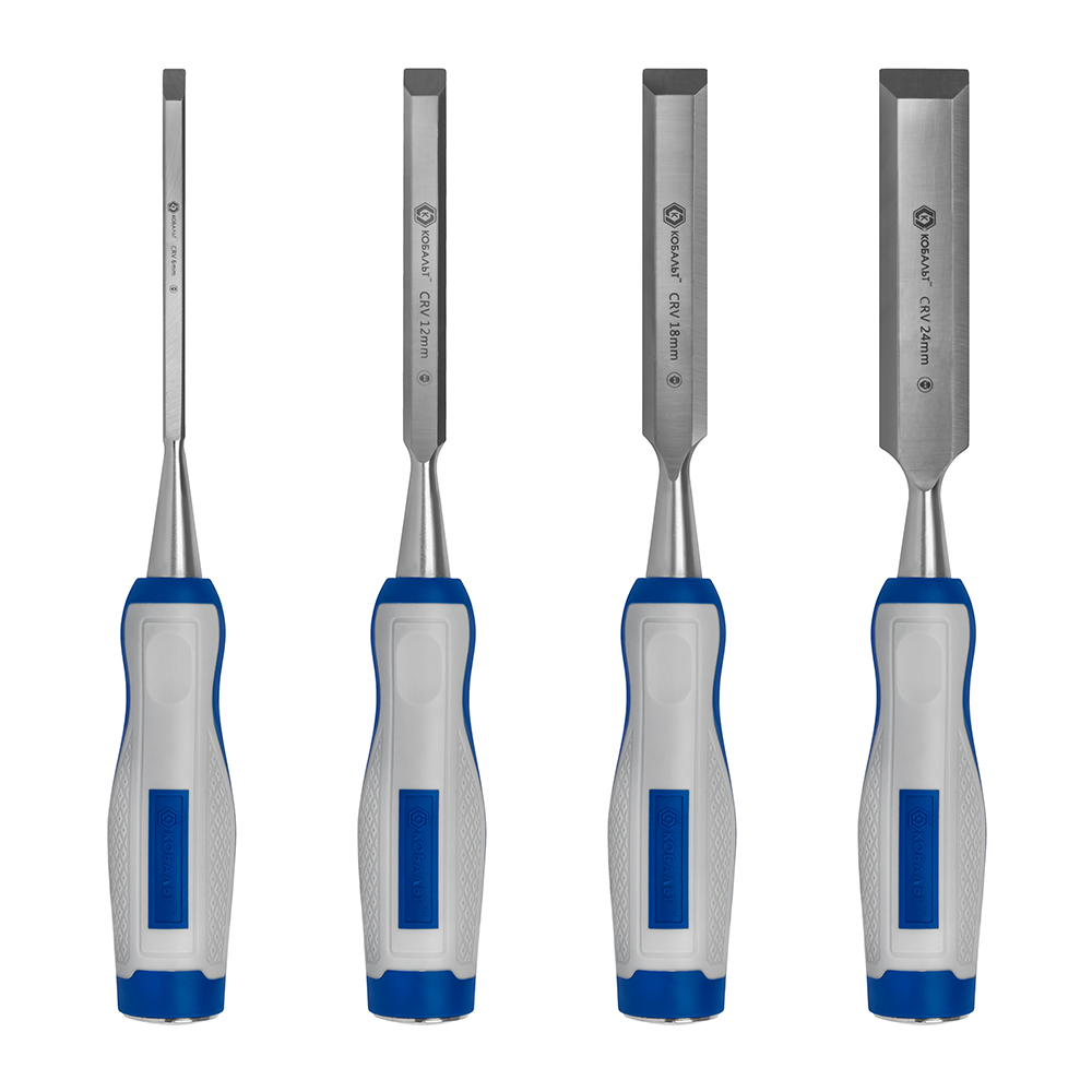 Набор стамесок КОБАЛЬТ плоских: 6, 12, 18, 24 х 140 мм, CR-V, двухкомпонентная рукоятка, 4 ШТ., блистер (245-671) - цена, фото, технические характеристики