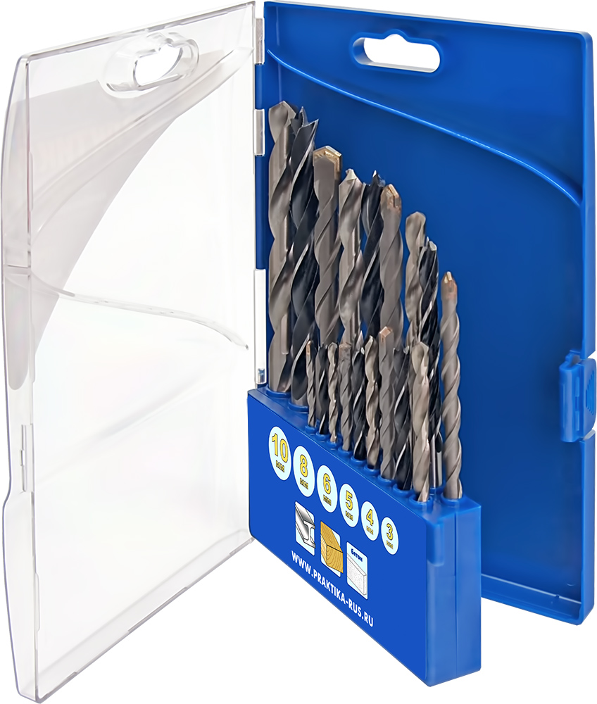 Набор сверл комбинированный ПРАКТИКА "Профи", 18 шт, металлу/бетону/дереву 3,4,5,6,8,10 мм (640-391) - цена, фото, технические характеристики