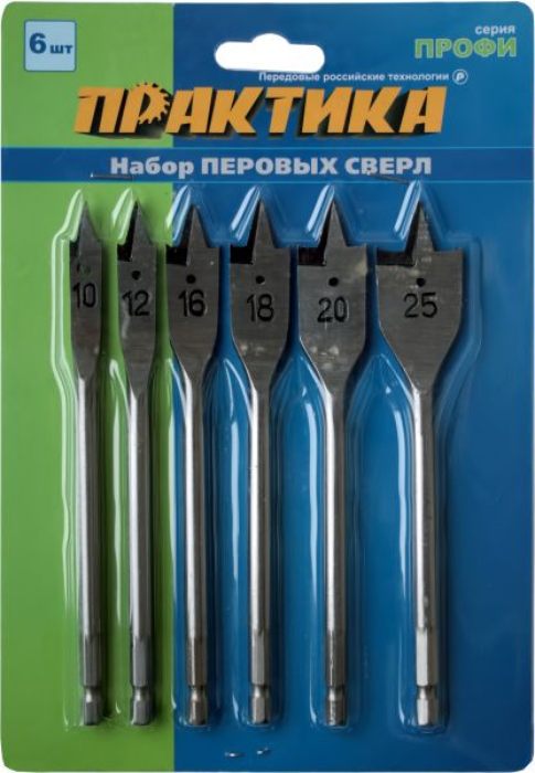 Набор сверл перовых ПРАКТИКА 6 шт 10/12/16/18/20/25 мм в блистере (774-368) - цена, фото, технические характеристики