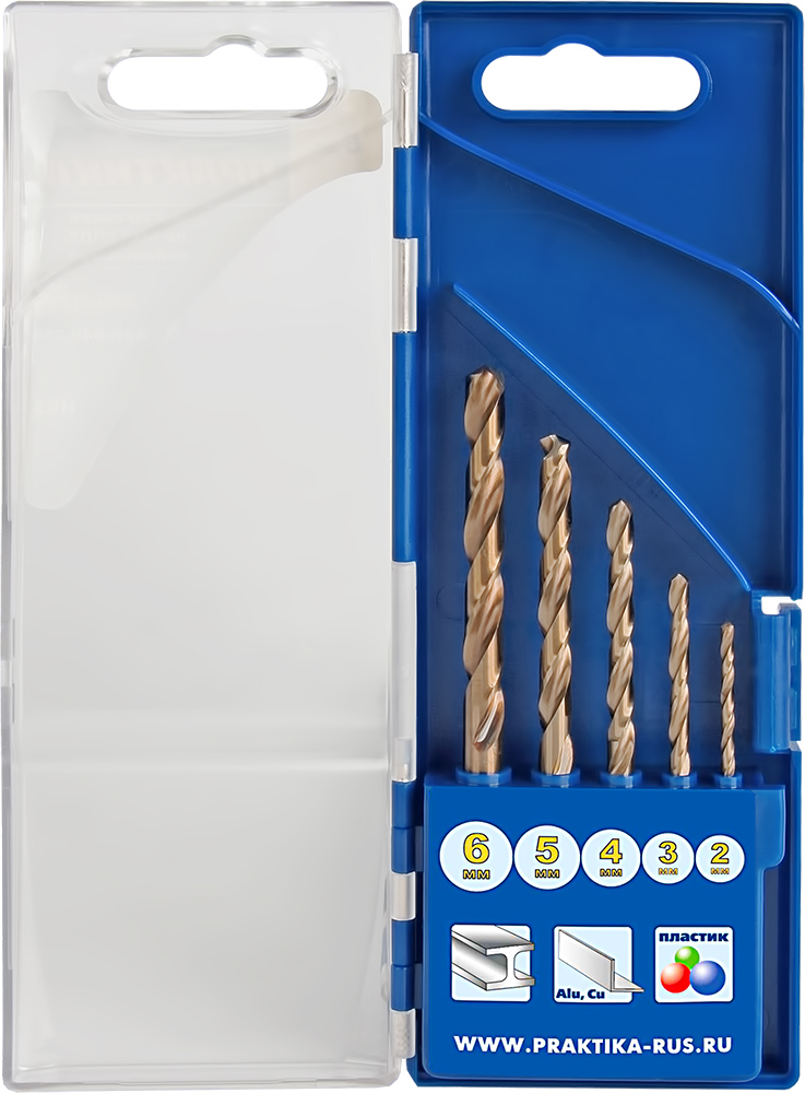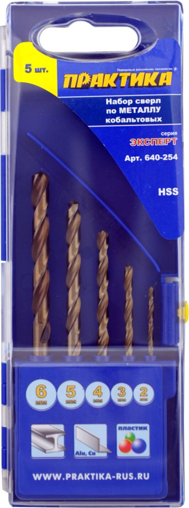 Набор сверл по металлу ПРАКТИКА "Эксперт", кобальтовые, 5 шт 2,3,4,5,6 мм, ПРО кассета (640-254) - цена, фото, технические характеристики