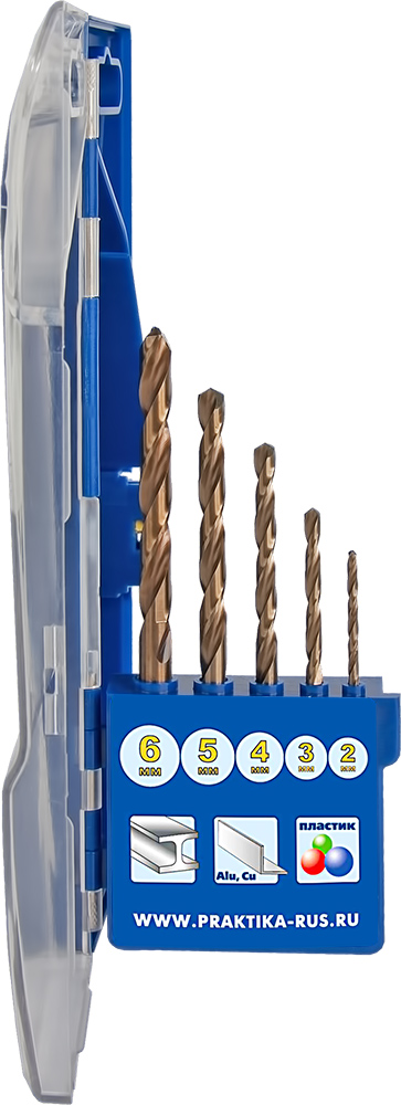 Набор сверл по металлу ПРАКТИКА "Эксперт", кобальтовые, 5 шт 2,3,4,5,6 мм, ПРО кассета (640-254) 2,3,4,5,6 мм, ПРО кассета