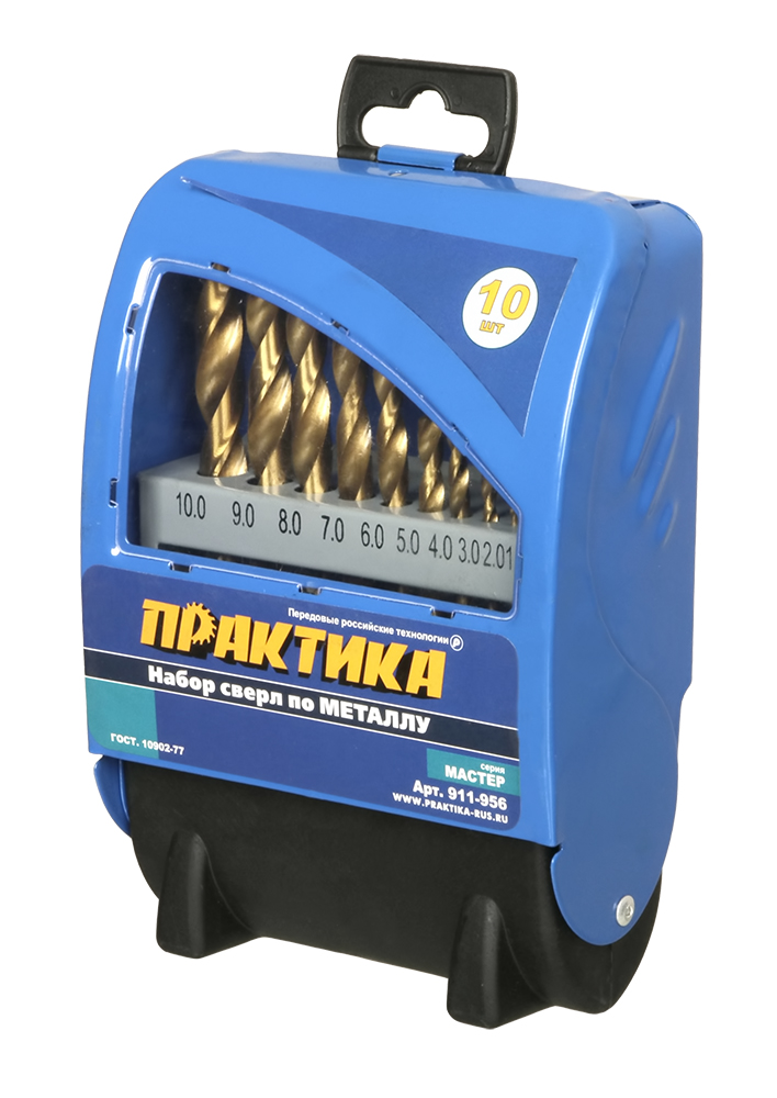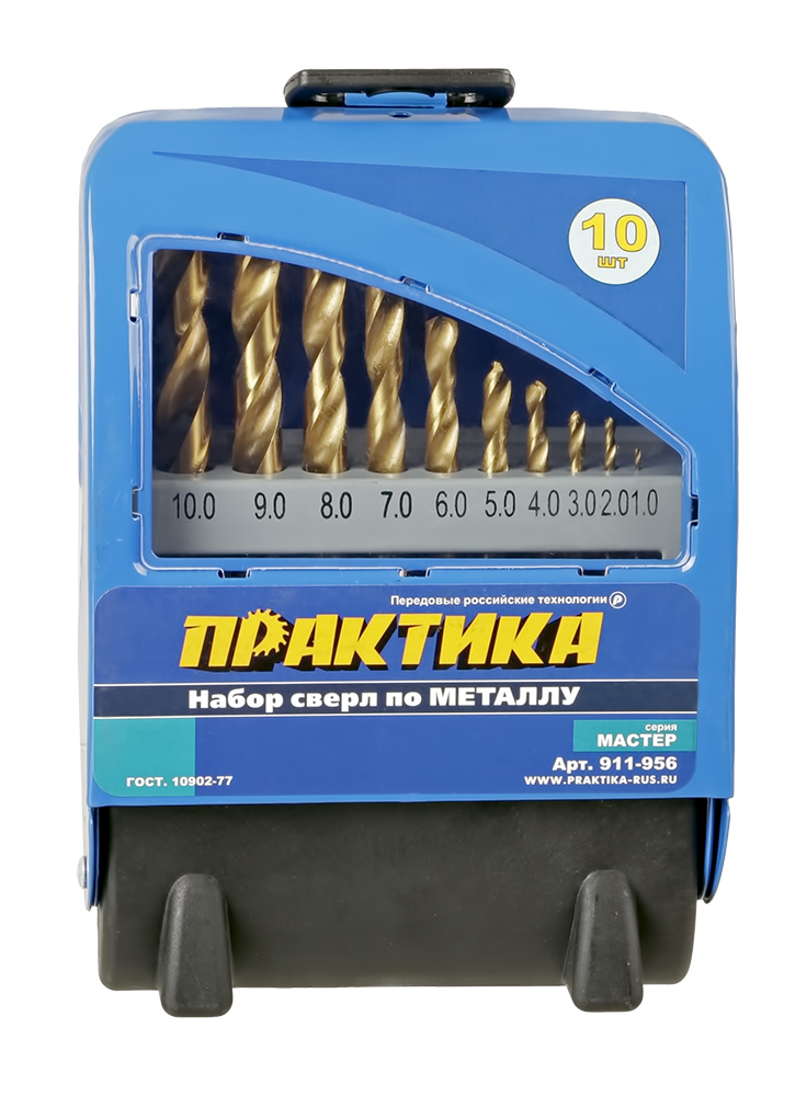 Набор сверл по металлу ПРАКТИКА "Мастер", 10 шт, 1 - 10 мм в металлической кассете (911-956) - цена, фото, технические характеристики