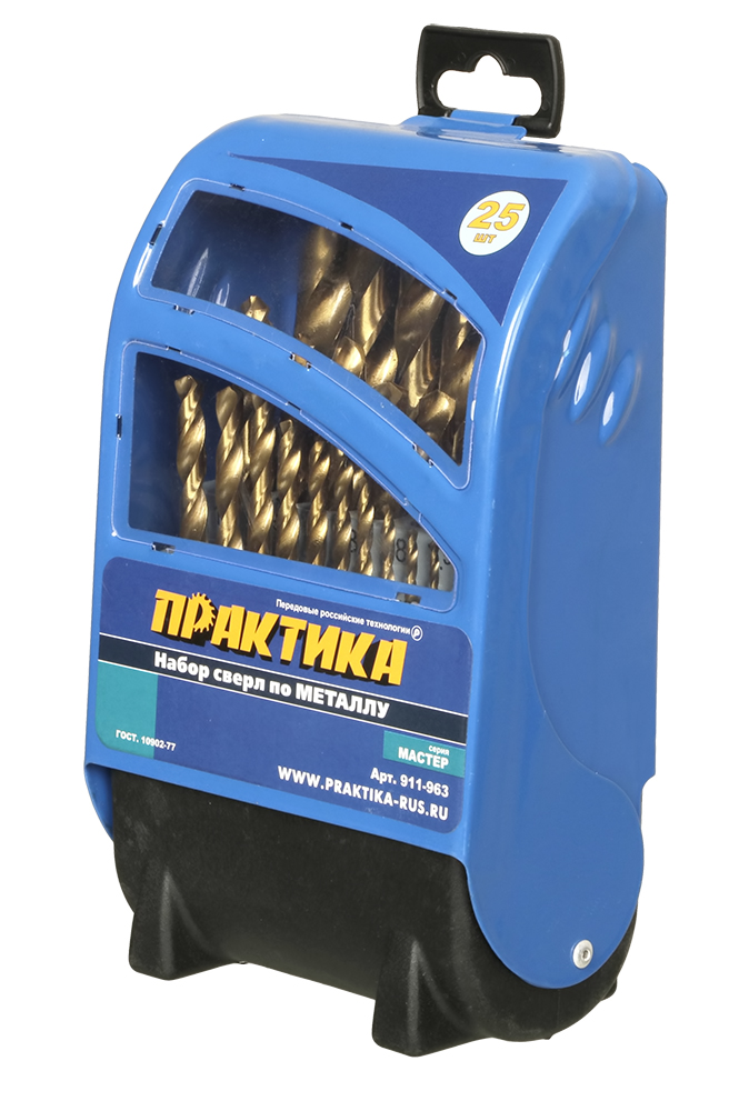 Набор сверл по металлу ПРАКТИКА "Мастер", 25 шт, 1 - 13 мм в металлической кассете (911-963) - цена, фото, технические характеристики