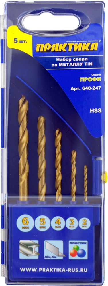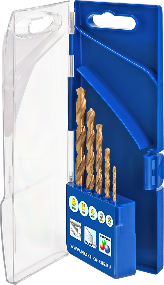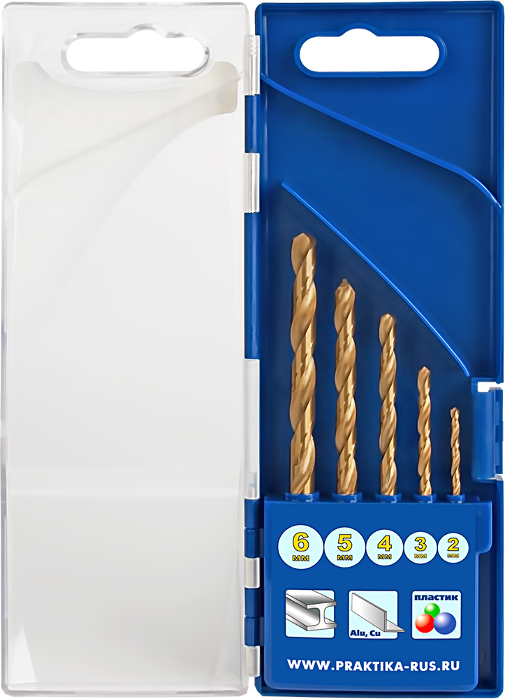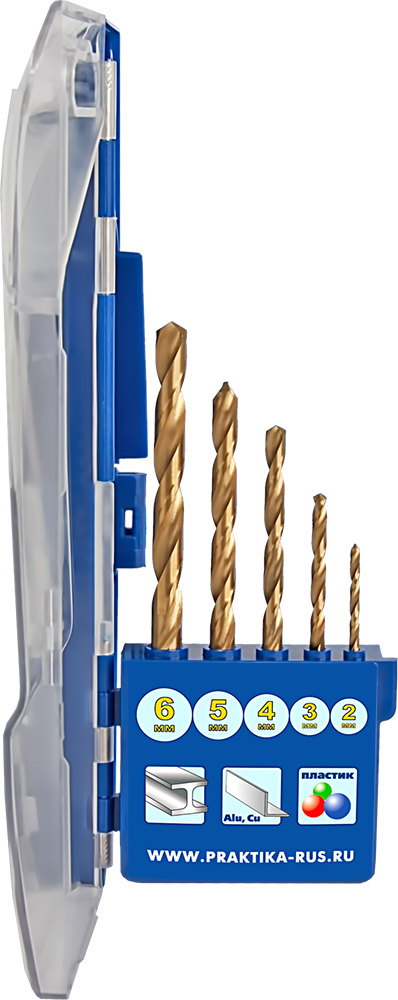 Набор сверл по металлу ПРАКТИКА "Профи", нитрид титана, 5 шт 2,3,4,5,6 мм, ПРО кассета (640-247) - цена, фото, технические характеристики