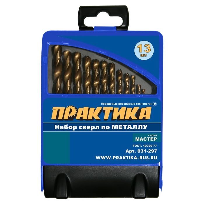 Набор сверл по металлу ПРАКТИКА "Мастер", 13 шт, 1,5 - 6,5 мм, в металлической кассете (031-297) - цена, фото, технические характеристики