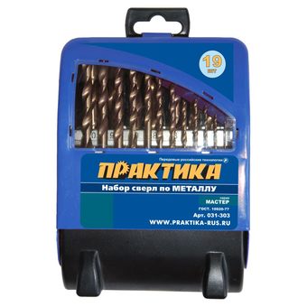 Набор сверл по металлу ПРАКТИКА "Мастер", 19 шт, 1 - 10 мм в металлической кассете (031-303) - цена, фото, технические характеристики