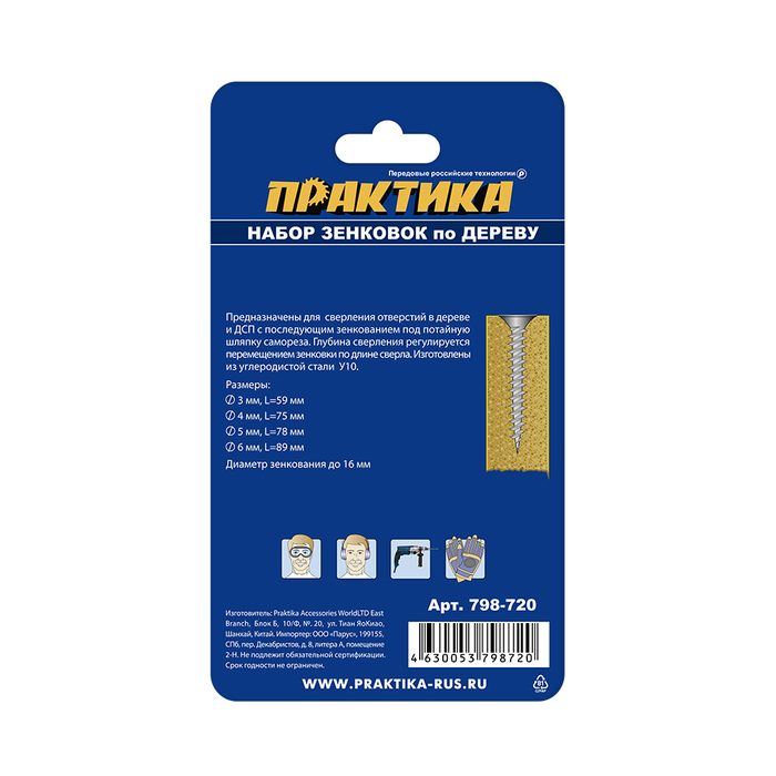 Набор зенковок по дереву ПРАКТИКА (4 шт), сверла 3, 4, 5, 6 мм - цена, фото, технические характеристики
