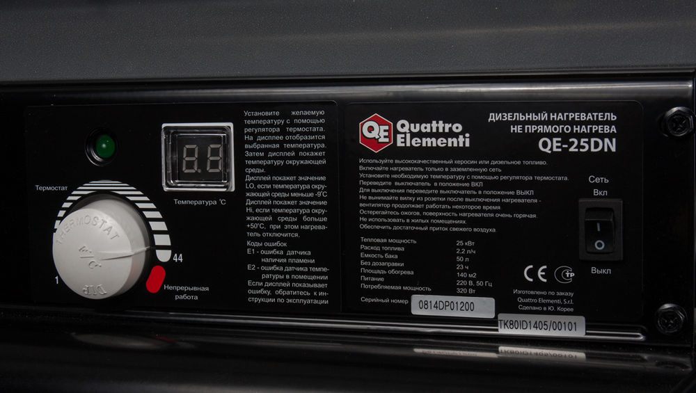 Нагреватель воздуха дизельный непрямого нагрева QUATTRO ELEMENTI QE-25DN (25кВт, 290 м.куб/ч, бак 50л, 2,2л/ч, 39кг) (772-364) - цена, фото, технические характеристики