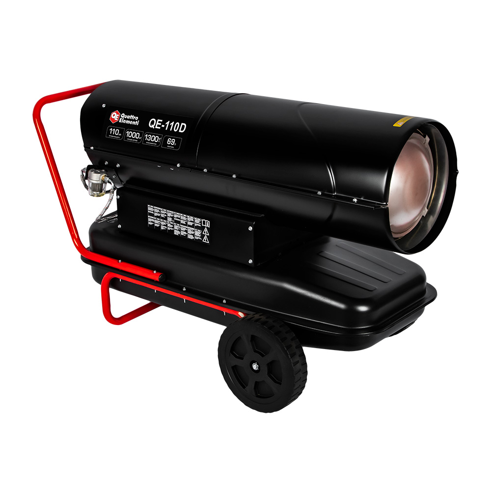 Нагреватель воздуха дизельный прямого нагрева QUATTRO ELEMENTI QE-110D (110кВт, 1300 м.куб/ч, бак 69л, 7.9л/ч, 40,8кг) (915-274) - цена, фото, технические характеристики