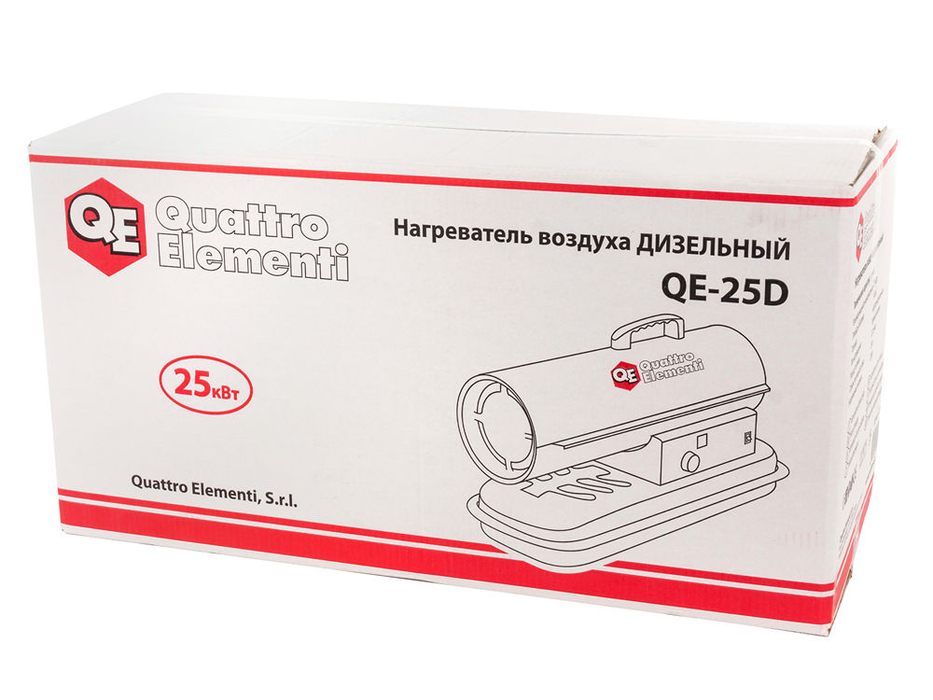 Нагреватель воздуха дизельный прямого нагрева QUATTRO ELEMENTI QE-25D (25кВт, 400 м.куб/ч, бак 20л, 2,2л/ч, 15,7кг) (772-333)