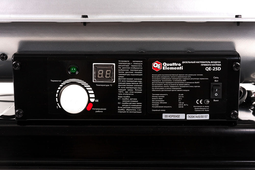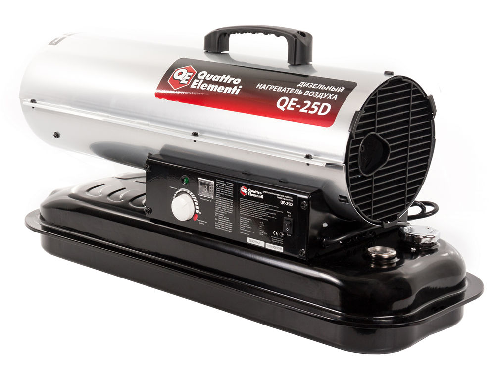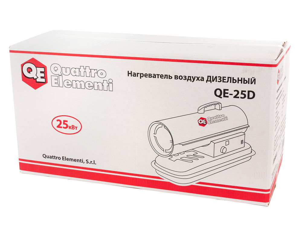 Нагреватель воздуха дизельный прямого нагрева QUATTRO ELEMENTI QE-25D (25кВт, 400 м.куб/ч, бак 20л, 2,2л/ч, 15,7кг) (772-333) - цена, фото, технические характеристики
