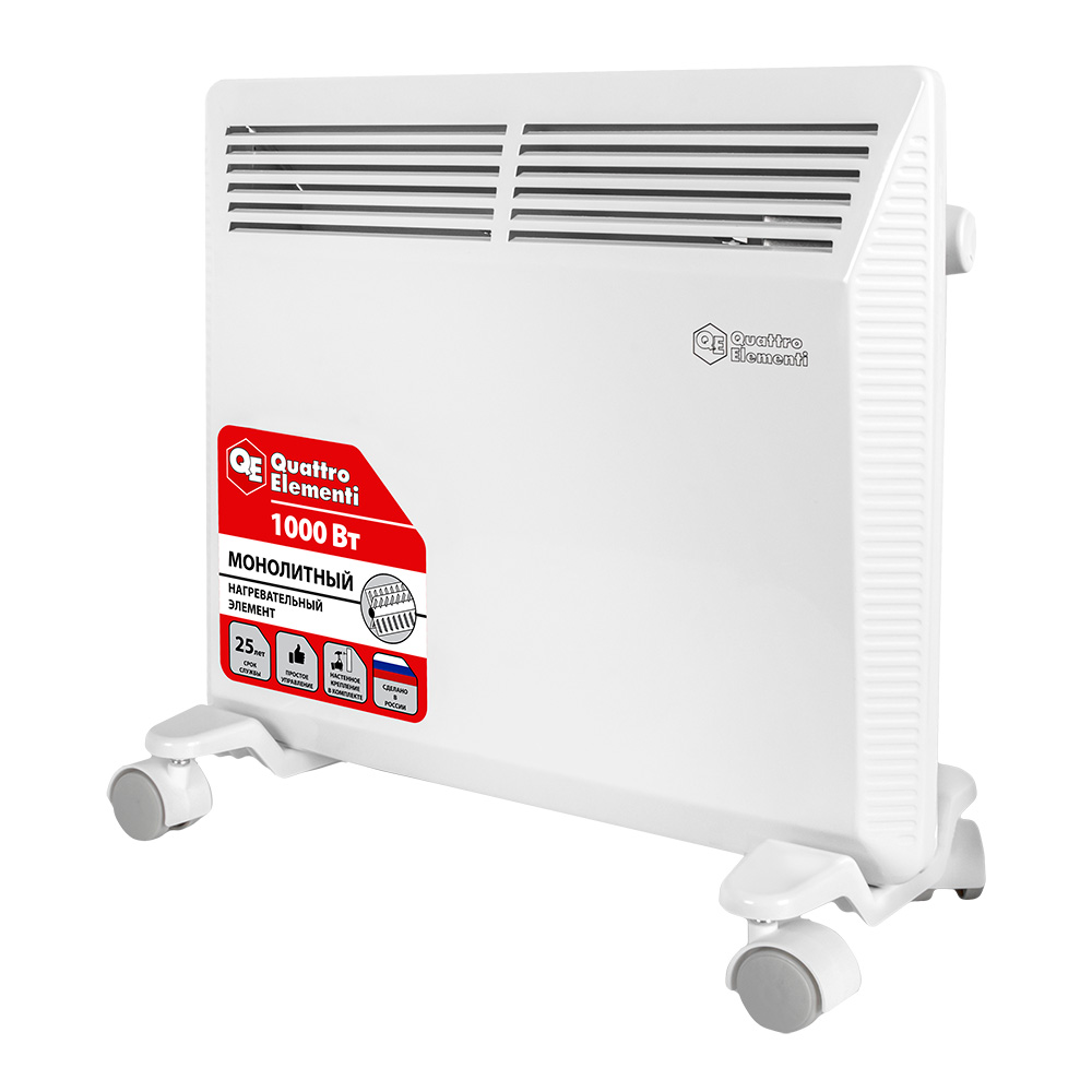 Нагреватель электрический конвекторный QUATTRO ELEMENTI QE-1000KM (1,0 кВт, монолитный нагр. эл., мех. управление) - цена, фото, технические характеристики