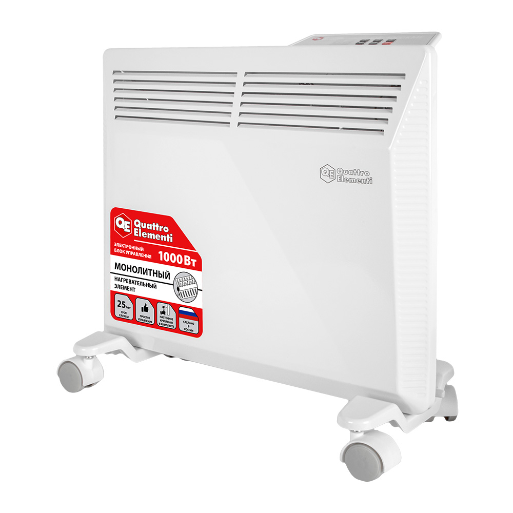 Нагреватель электрический конвекторный QUATTRO ELEMENTI QE-1000KME (1,0 кВт, с эл.блоком управления, монолитный нагр. эл.) - цена, фото, технические характеристики