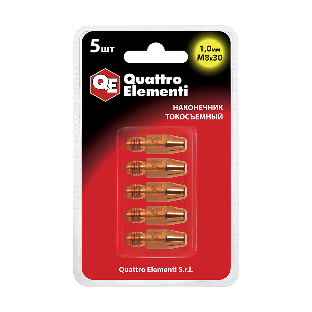 Наконечник токосъемный QUATTRO ELEMENTI M8x30 1.0 мм (5 шт) в блистере, для горелки полу (771-275) - цена, фото, технические характеристики