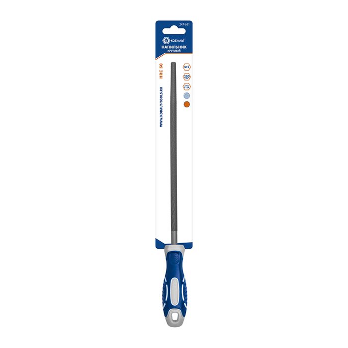 Напильник круглый КОБАЛЬТ насечка №1, длина рабочая/общая 225/360 мм, диаметр 9 мм, 2-х компонентная рукоятка, блистер (247-651) - цена, фото, технические характеристики