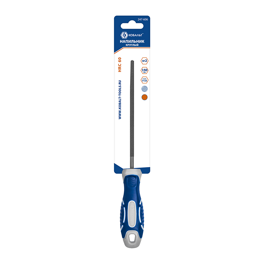 Напильник круглый КОБАЛЬТ насечка №2, длина рабочая/общая 135/260 мм, диаметр 6 мм, 2-х компонентная рукоятка, блистер (247-606) - цена, фото, технические характеристики