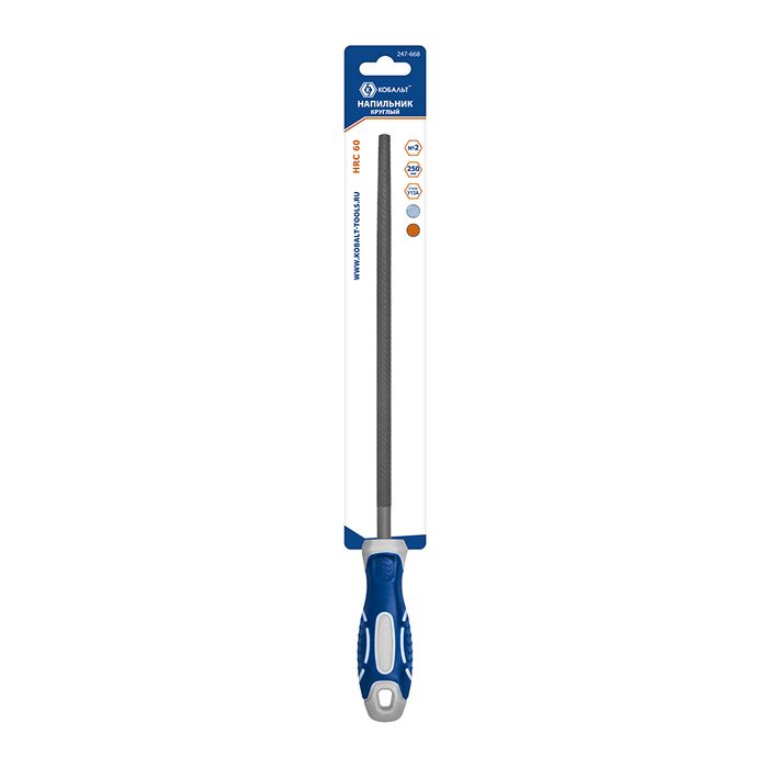 Напильник круглый КОБАЛЬТ насечка №2, длина рабочая/общая 225/360 мм, диаметр 9 мм, 2-х компонентная рукоятка, блистер (247-668) - цена, фото, технические характеристики