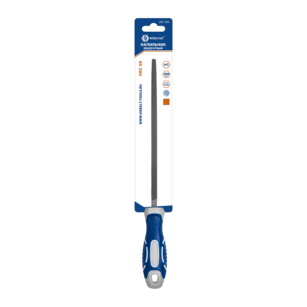 Напильник квадратный КОБАЛЬТ насечка №1, длина рабочая/общая 180/310 мм, сечение 7х7 мм, 2-х компонентная рукоятка, блистер (247-705) - цена, фото, технические характеристики
