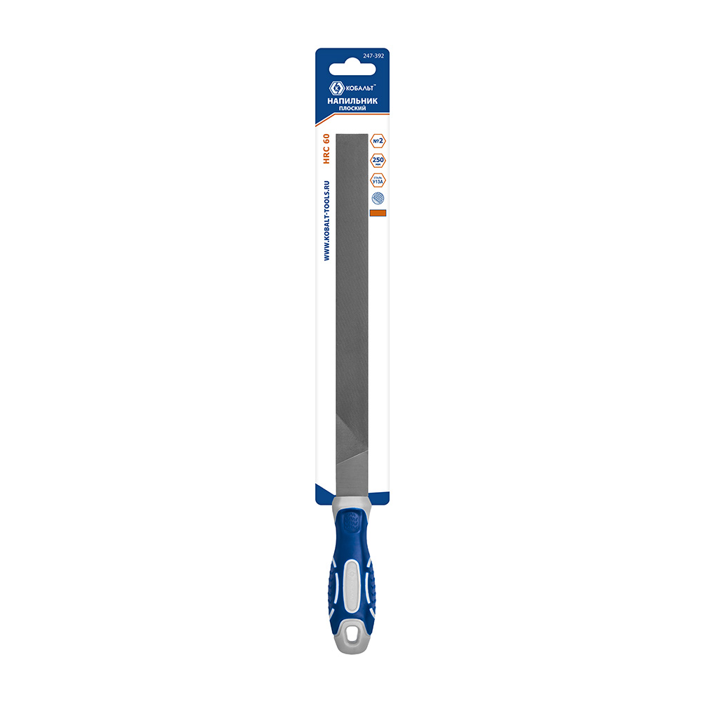 Напильник плоский КОБАЛЬТ насечка №2, длина рабочая/общая 225/360 мм, сечение 23х5 мм, 2-х компонентная рукоятка, блистер (247-392) - цена, фото, технические характеристики