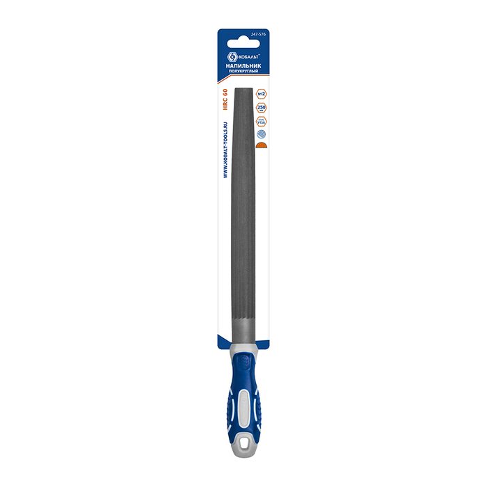 Напильник полукруглый КОБАЛЬТ насечка №2, длина рабочая/общая 225/360 мм, сечение 24х7 мм, 2-х компонентная рукоятка, блистер (247-576) - цена, фото, технические характеристики
