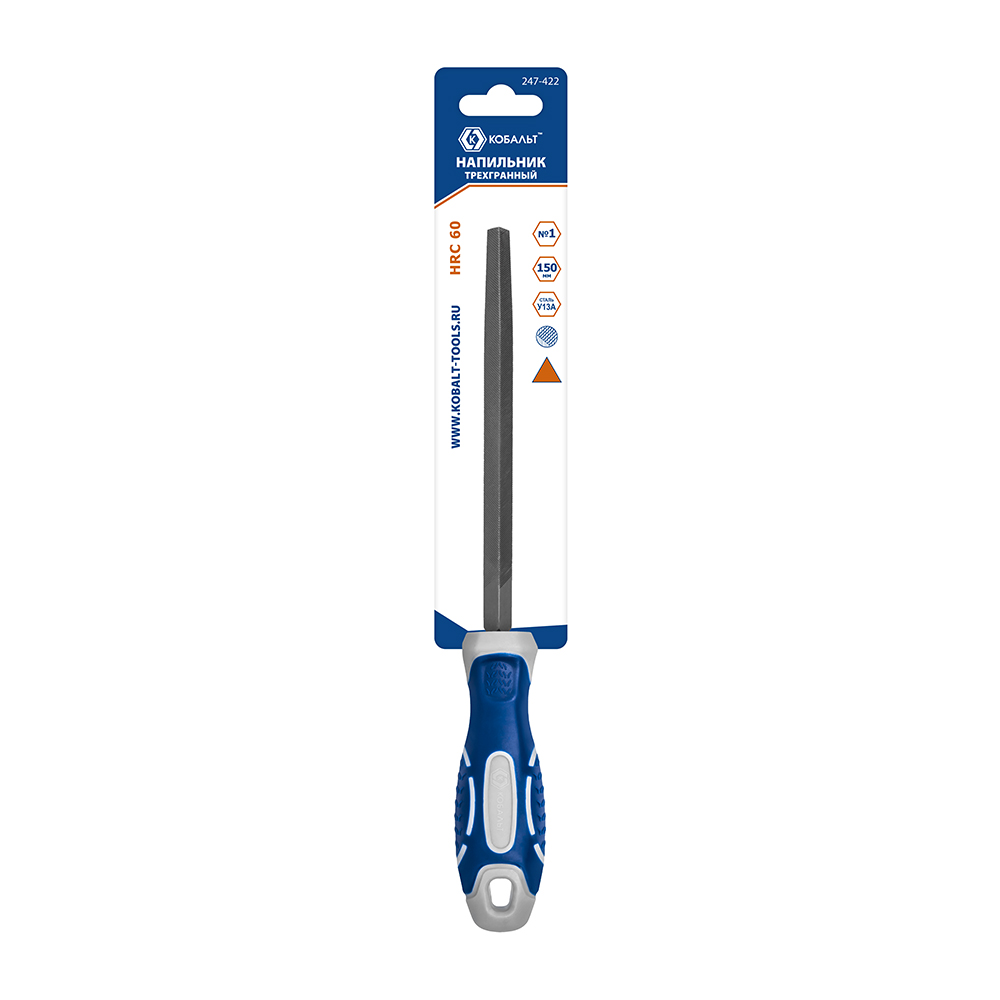 Напильник трехгранный КОБАЛЬТ насечка №1, длина рабочая/общая 135/260 мм, сечение 11х11 мм, 2-х компонентная рукоятка, блистер (247-422) - цена, фото, технические характеристики