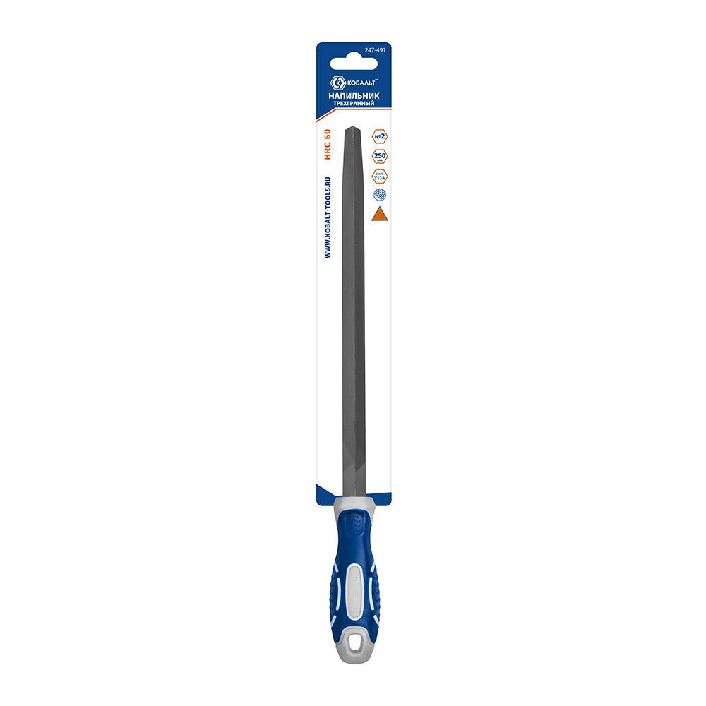 Напильник трехгранный КОБАЛЬТ насечка №2, длина рабочая/общая 225/360 мм, сечение 15.2х15.2 мм, 2-х компонентная рукоятка, блистер (247-491) - цена, фото, технические характеристики