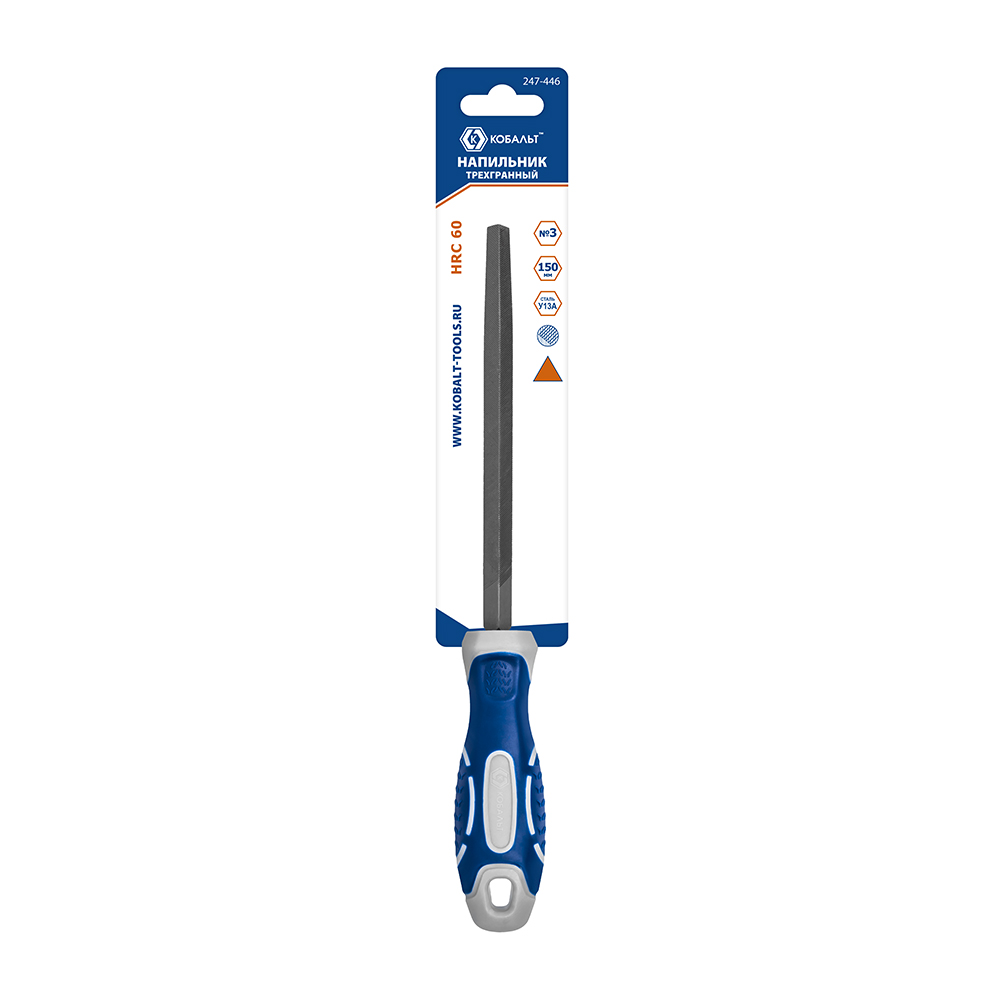 Напильник трехгранный КОБАЛЬТ насечка №3, длина рабочая/общая 135/260 мм, сечение 11х11 мм, 2-х компонентная рукоятка, блистер (247-446) - цена, фото, технические характеристики