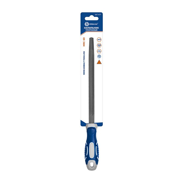 Напильник трехгранный КОБАЛЬТ насечка №3, длина рабочая/общая 180/310 мм, сечение 12х12 мм, 2-х компонентная рукоятка, блистер (247-477)