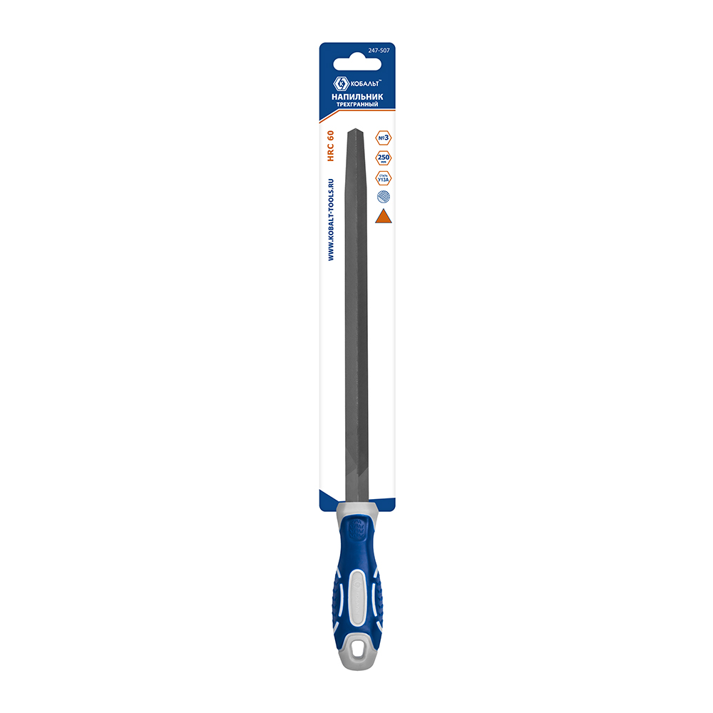 Напильник трехгранный КОБАЛЬТ насечка №3, длина рабочая/общая 225/360 мм, сечение 15.2х15.2 мм, 2-х компонентная рукоятка, блистер (247-507) - цена, фото, технические характеристики