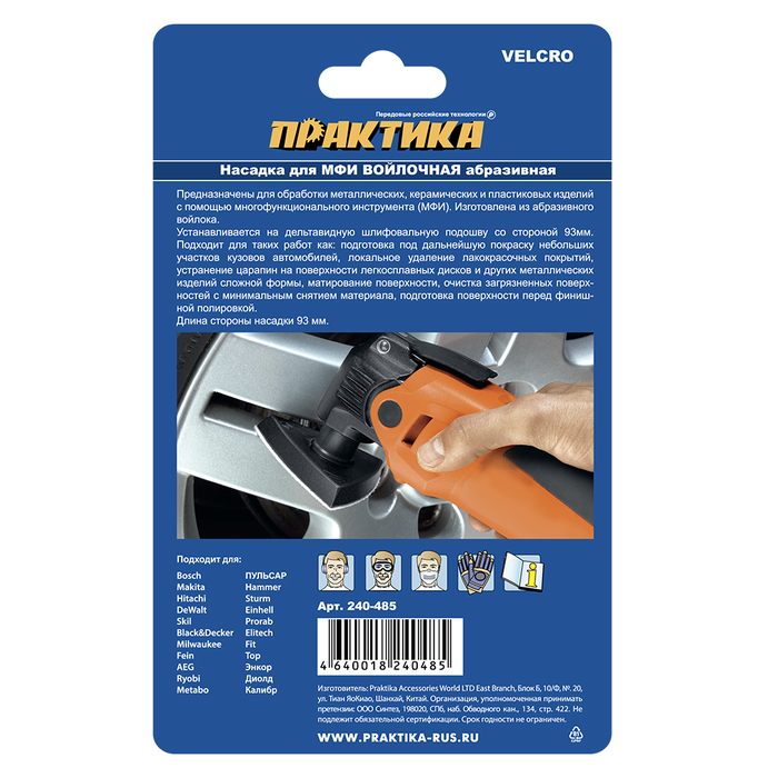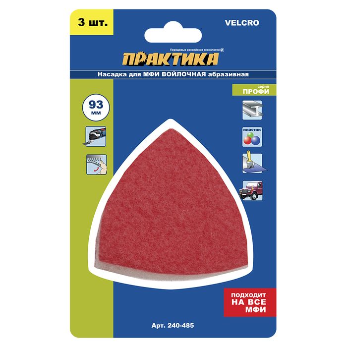 Насадка для МФИ ПРАКТИКА абразивный войлок, БЕЗ отверстий, дельта 93 мм, 3 шт (240-485) - цена, фото, технические характеристики
