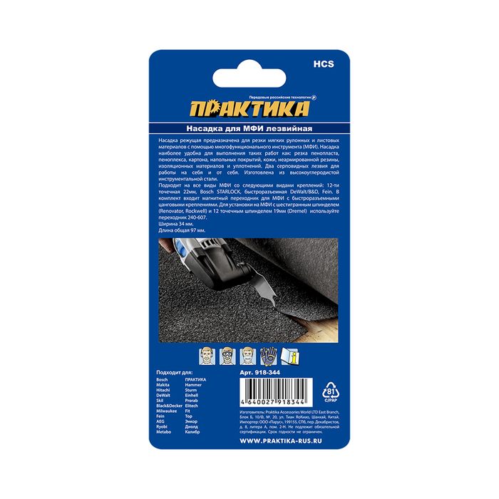 Насадка для МФИ ПРАКТИКА - коготь, режущая ножевая, HCS, по линолеуму, резине, картону, дл (918-344) - цена, фото, технические характеристики