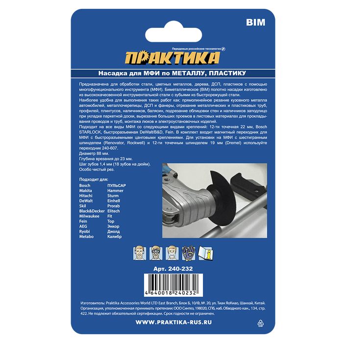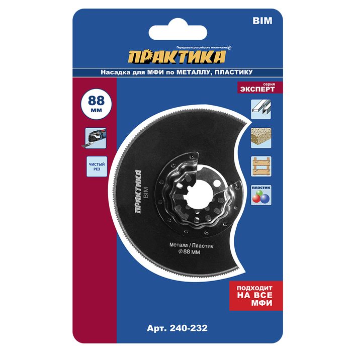 Насадка для МФИ ПРАКТИКА отрезная полукруг, BiM, по металлу и дереву, 88 мм, мелкий зуб (240-232) - цена, фото, технические характеристики