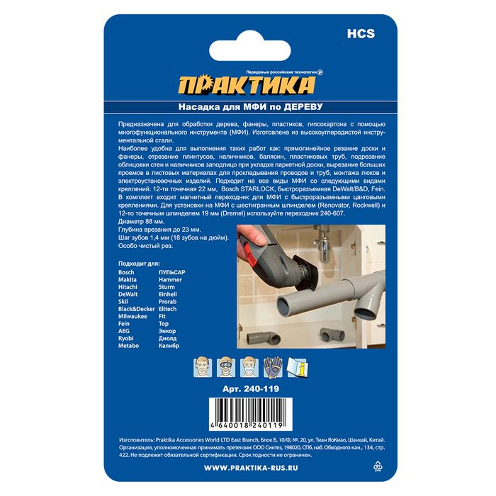 Насадка для МФИ ПРАКТИКА отрезная полукруг, HCS, по дереву, 88 мм, мелкий зуб (240-119) - цена, фото, технические характеристики