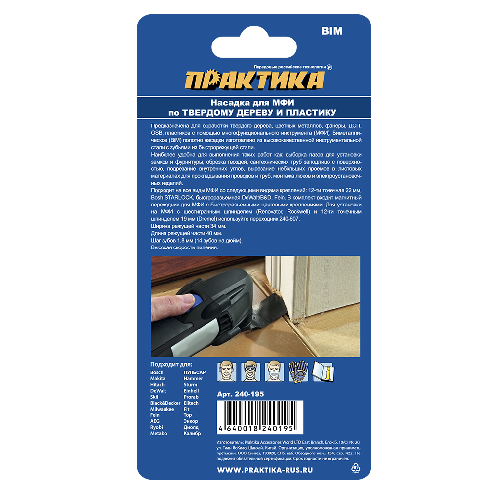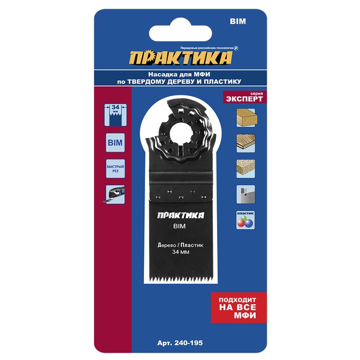 Насадка для МФИ ПРАКТИКА режущая пазовая прямая, BiM, по тверд. дереву, ДСП, 34 мм, крупны (240-195) - цена, фото, технические характеристики