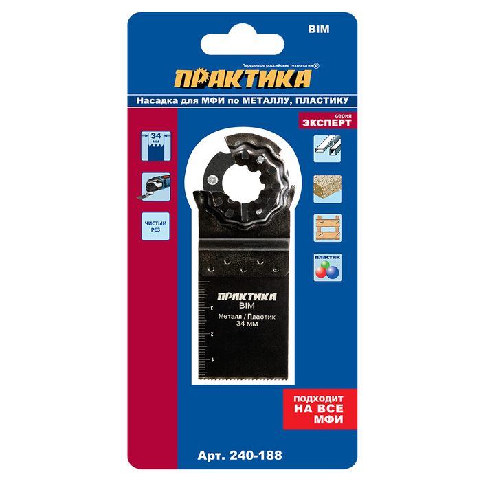 Насадка для МФИ ПРАКТИКА режущая пазовая прямая, BiM, по металлу и дереву, 34 мм, мелкий з (240-188) - цена, фото, технические характеристики