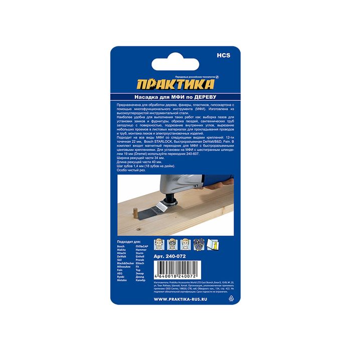 Насадка для МФИ ПРАКТИКА режущая пазовая прямая, HCS, по дереву, 34 мм, мелкий зуб (240-072) - цена, фото, технические характеристики