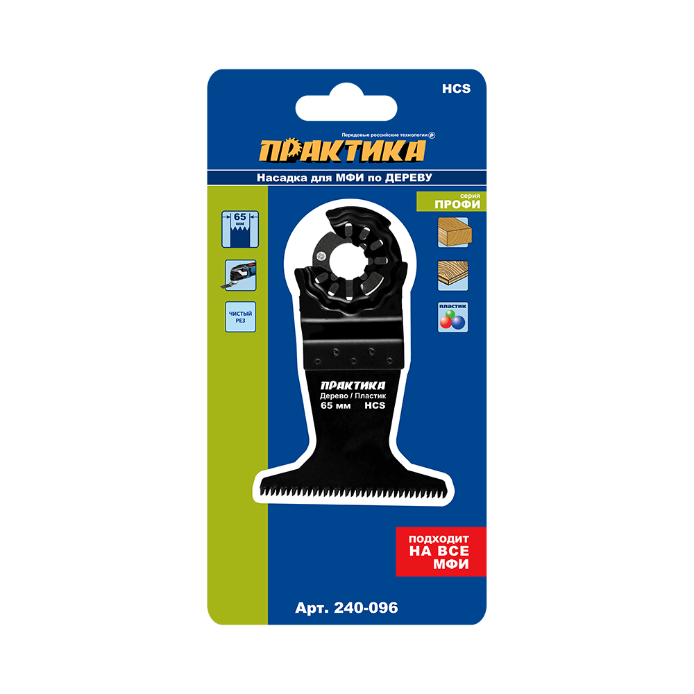 Насадка для МФИ ПРАКТИКА режущая прямая, HCS, по дереву, 65 мм, мелкий зуб (240-096) - цена, фото, технические характеристики