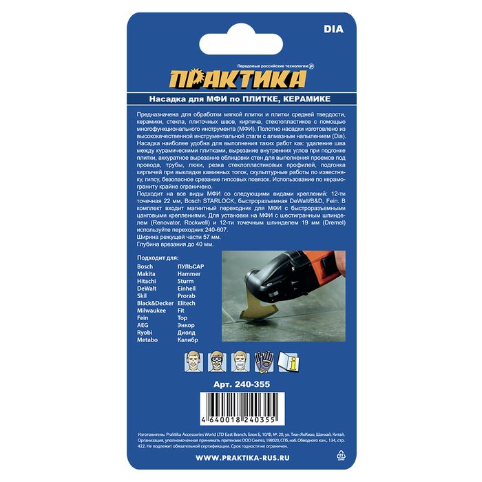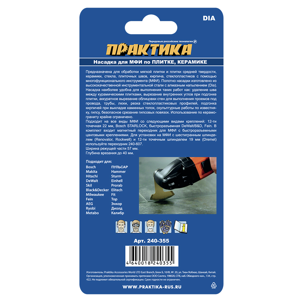 Насадка для МФИ ПРАКТИКА режущая сегментная, DiA, по камню и плитке, 57 мм (240-355) - цена, фото, технические характеристики