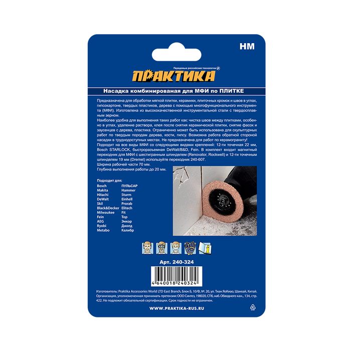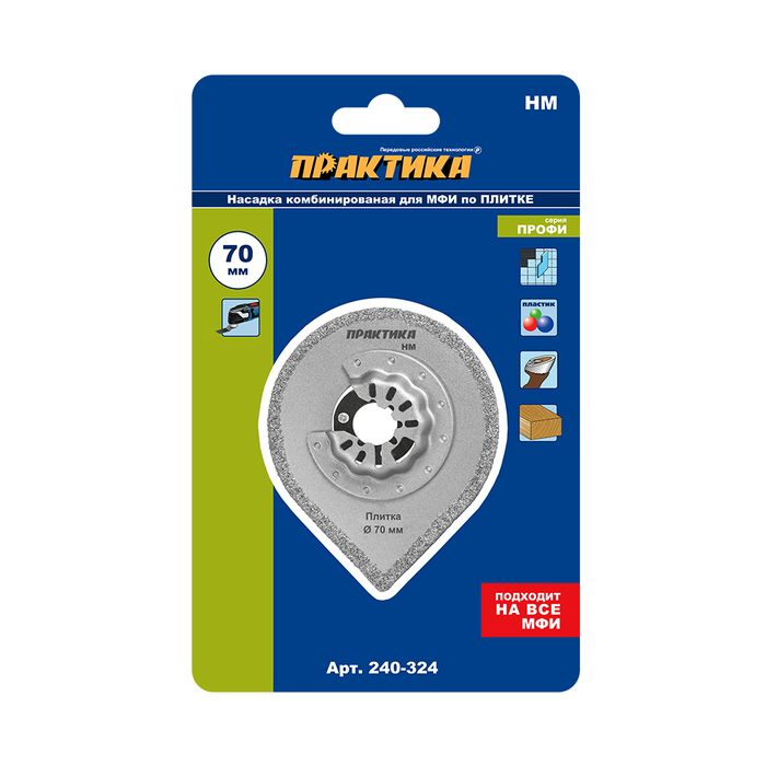 Насадка для МФИ ПРАКТИКА режущая - шлифовальная для углов, HM, по плитке и дереву, 70 мм (240-324) - цена, фото, технические характеристики