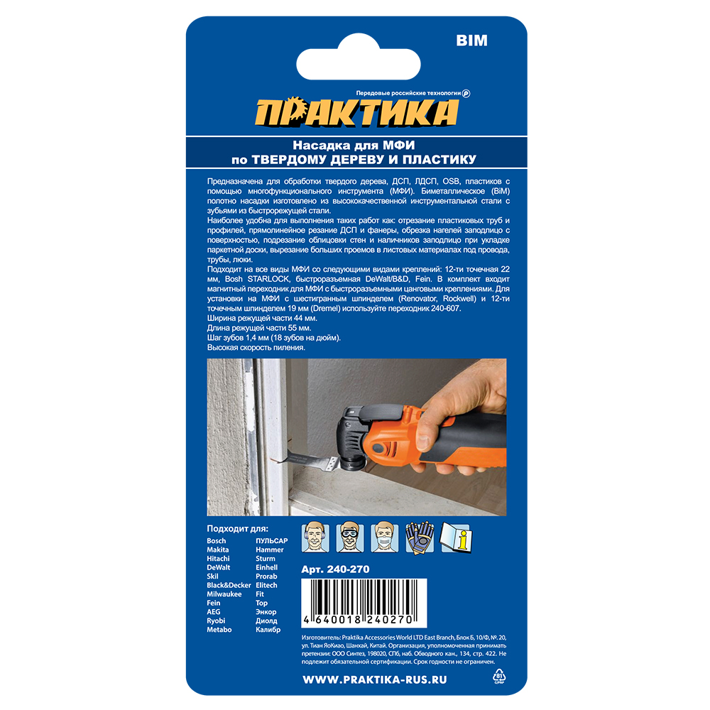 Насадка для МФИ ПРАКТИКА режущая Т-образная, BiM, по металлу и дереву, 44 мм, крупный зуб (240-270) - цена, фото, технические характеристики