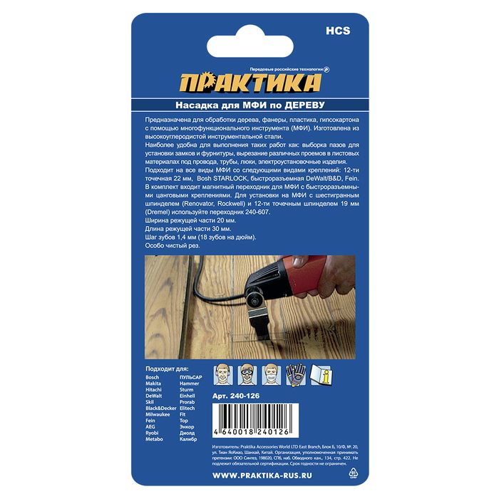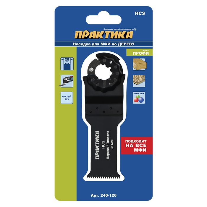 Насадка для МФИ ПРАКТИКА режущая Т-образная, HCS, по дереву, 28 мм, мелкий зуб (240-126) - цена, фото, технические характеристики