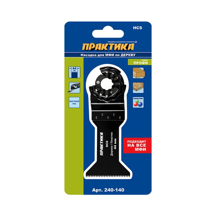 Насадка для МФИ ПРАКТИКА режущая Т-образная, HCS, по дереву, 44 мм, крупный зуб (240-140) - цена, фото, технические характеристики