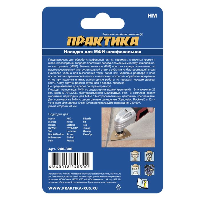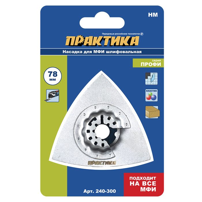Насадка для МФИ ПРАКТИКА шлифовальная дельтавидная, HM, по плитке и дереву, 78 мм (240-300) - цена, фото, технические характеристики