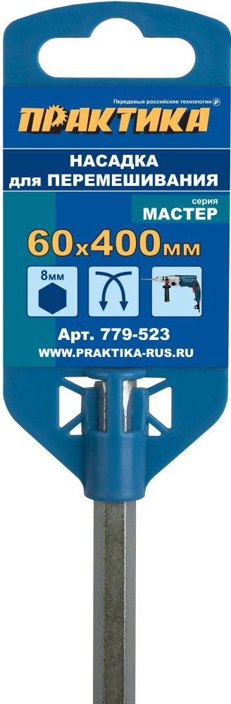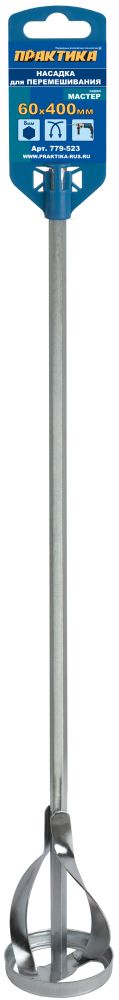 Насадка для перемешивания ПРАКТИКА хвостовик НЕХ 8, 60 х 400, лаки, краски (779-523) - цена, фото, технические характеристики