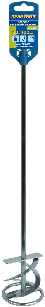 Насадка для перемешивания ПРАКТИКА хвостовик НЕХ 8, 80 х 400, гипс, клей д/плитки (779-493) - цена, фото, технические характеристики