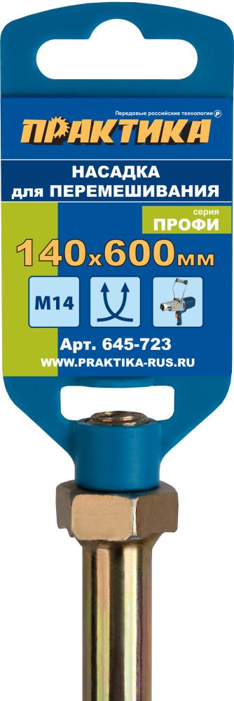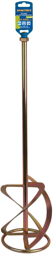 Насадка для перемешивания ПРАКТИКА хвостовик М14, 140 х 600 мм, гипс, цемент, клей д/плитк (645-723) - цена, фото, технические характеристики