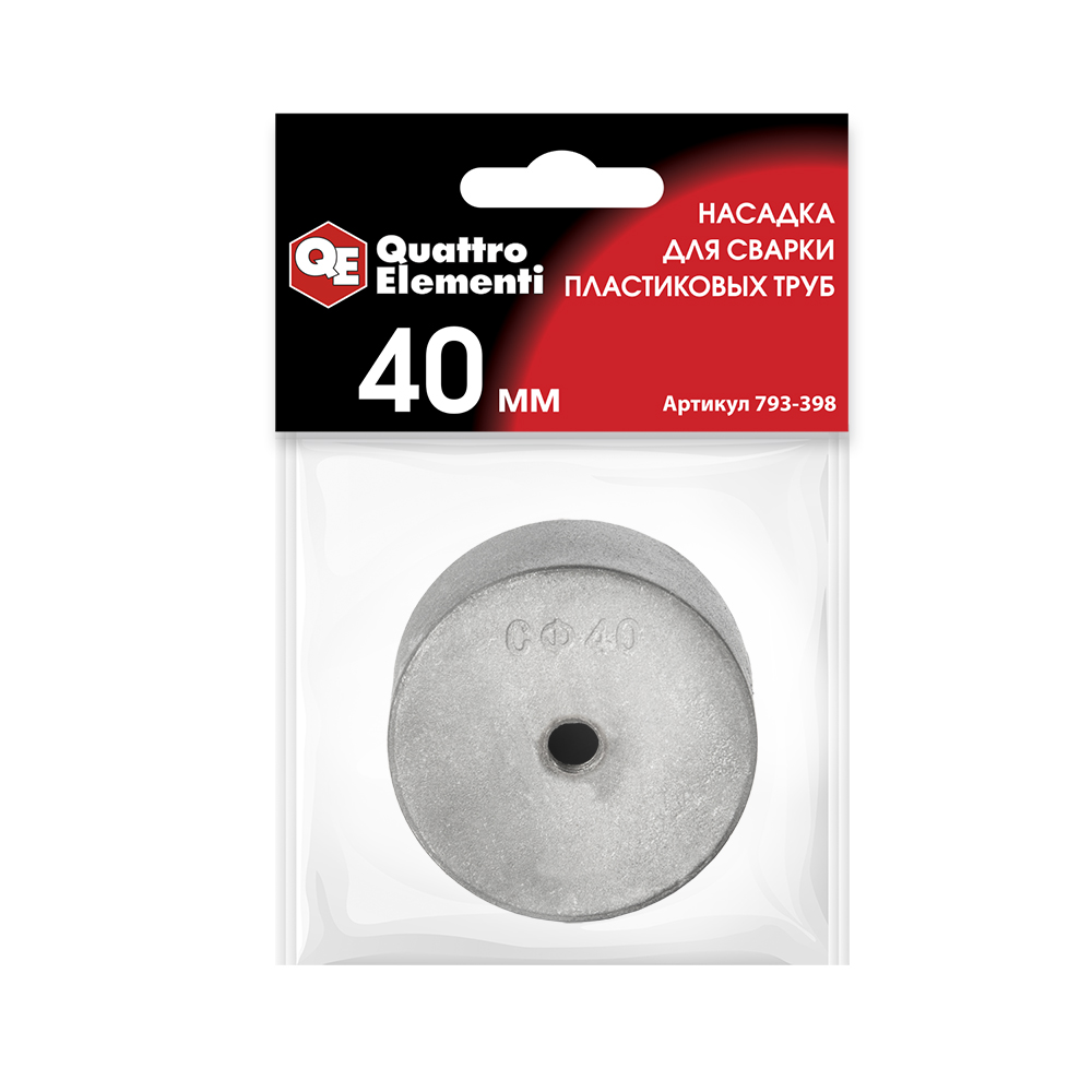 Насадка для сварки пластиковых труб QUATTRO ELEMENTI 40 мм (парная; в пакете с европодвесом) (793-398) - цена, фото, технические характеристики